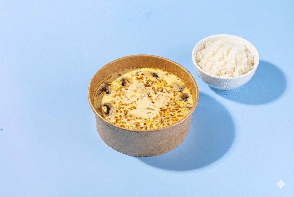 Куриный бульон, Сливочный Соус, Филе Куриное, Сыр Чеддер, Шампионы, Куруруза, Хрустящий лук, Рис